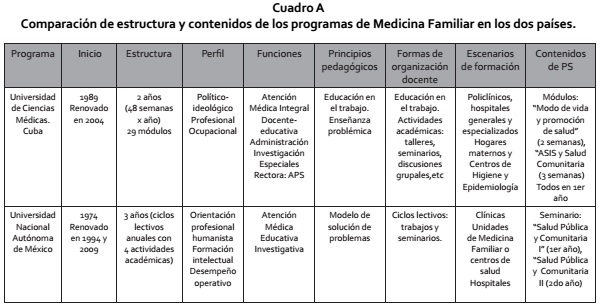 Al diseñarse los programas de especialización del Médico Familiar en Cuba y en México, en correspondencia con su perfil profesional y futuro desempeño, era de esperar que se incluyeran conocimientos y habilidades relacionados con la promoción de la salud, como respuesta al Modelo de Atención que se desarrollaba en ambos países y en cuyas instituciones prestadoras de servicios, debían ubicarse. Se han realizado valoraciones enfocadas a las competencias que los médicos familiares debían desarrollar para responder a las estrategias de promoción que se establecieron en los respectivos modelos de atención y que, por supuesto, debían estar incluidas tanto en el programa de Medicina Familiar en Cuba, como en el programa mexicano al ejecutarse la edición convenida en 2004 con la Secretaría de Salud en el Estado de Tabasco.