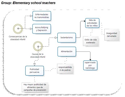 To make a general mapping of this social perception, groups were formed with key agents that constantly interact with the target population of this research. Hence, mothers were proposed, since in Mexico they are usually in charge of their family and children eating habits, as well as elementary school teachers since they perform as the observers of the child situation and, at the same time, have contact with mothers, therefore occupying an objective position regarding the problem.