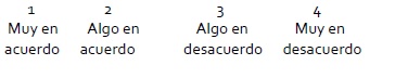 Los puntajes otorgados a cada ítem están en una escala de 1, 2, 3 o 4, donde: