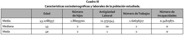 Para complementar las variables en estudio se utilizó una cédula de identificación que hace referencia a datos sociodemográfi y laborales con 17 preguntas.