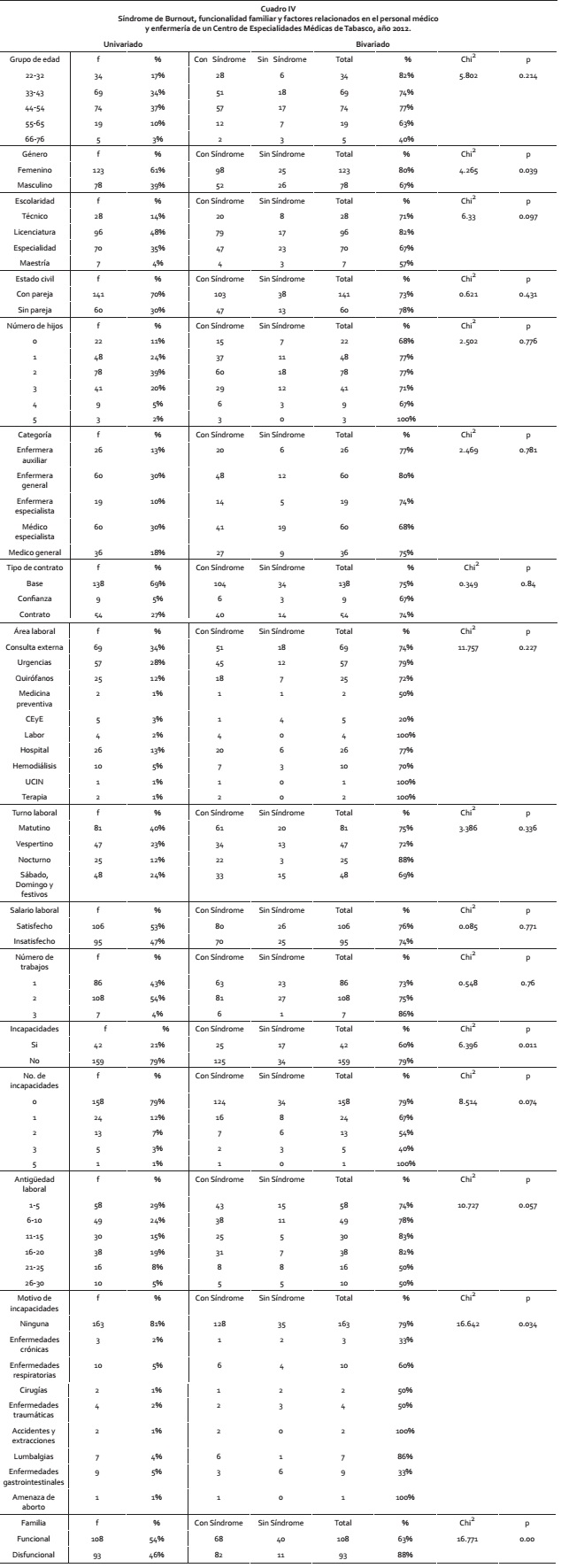 Síndrome de Burnout, funcionalidad familiar y factores relacionados en personal médico y de enfermería de un hospital de Villahermosa, Tabasco, México.
