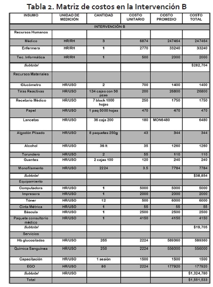 La evaluación de costo-efectividad permite realizar un ejercicio de búsqueda de información en diferentes fuentes como el Instituto Nacional de Salud Pública, Secretaria de Salud Pública, datos estadísticos del Centro de Salud Xoxocotla Morelos del Seguro Social, investigaciones teóricas y de tratamiento en diabetes mellitus o sobre intervenciones de costo-efectividad; la planeación del cómo se llevarán a cabo las actividades partiendo de los objetivos del programa, e identificación de los recursos a utilizar: recursos humanos, económicos y materiales, y finalmente la búsqueda de mecanismos para la gestión con las diferentes instituciones de acuerdo al tipo de prestación de servicios: Seguridad Social, Asistencia Pública y Sector Privado. Este ejercicio permite visualizar los posibles obstáculos que pueden existir en nuestra intervención.