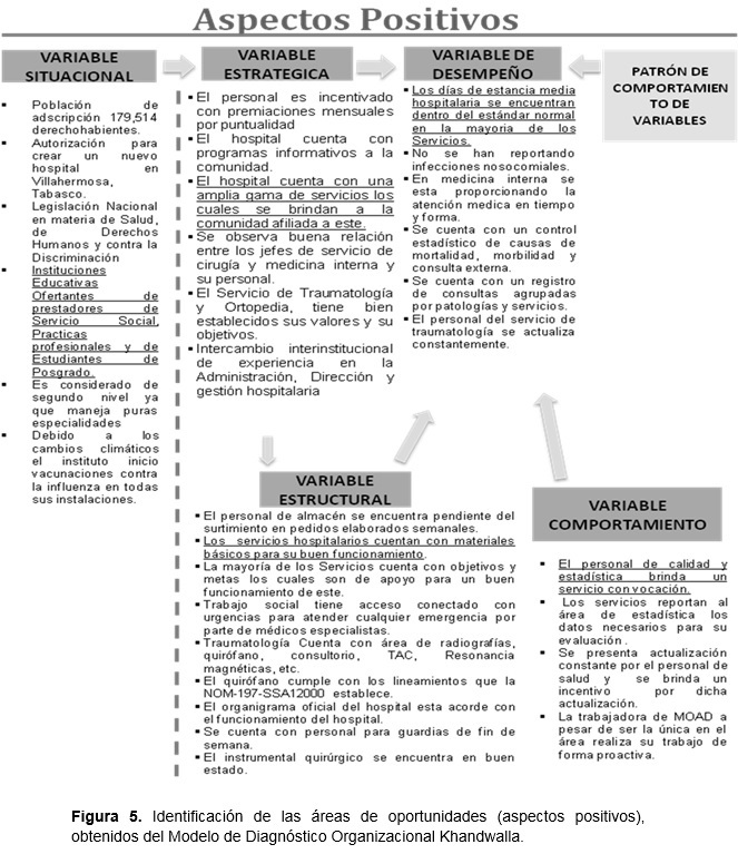 El modelo diagnóstico Khandwalla permite la identificación integral de problemáticas existentes y áreas de oportunidad en organizaciones sanitarias. En el hospital analizado, los aspectos negativos (problemática existente) fueron mayores a los positivos (áreas de oportunidad). Se identificó que la problemática se concentraba en las variables estructural y de desempeño. El hospital se encuentra en un estado de alerta y planteamientos para la mejora de su eficacia, eficiencia y productividad.