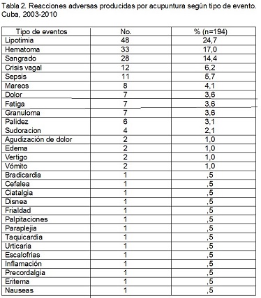 Reacciones adversas asociadas a la práctica de acupuntura en Cuba