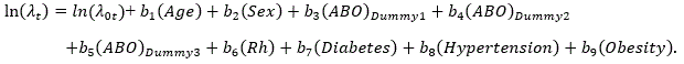 In summary, blood group A had a significant lower risk of death compared with group O (adjusted HR = 0.72, 95% IC 0.55-0.95, P = 0.02). Groups B, AB and Rh-positive were not significantly associated with the outcome. Moreover, type 2 diabetes (adjusted HR 1.54, 95% IC 1.27-1.88, P < 0.001) and obesity (adjusted HR 1.95 95% IC 1.6-2.39 P <0.001) were statistically significantly associated with an increased risk of death by COVID-19. Hypertension showed not statistical significance with respect to mortality in the adjusted model (adjusted HR 0.87, 95% IC 0.7-1.06 P <0.8), despite being associated with mortality in the unadjusted model (unadjusted HR 1.76 1.95% IC 1.47-2.11 P <0.001).